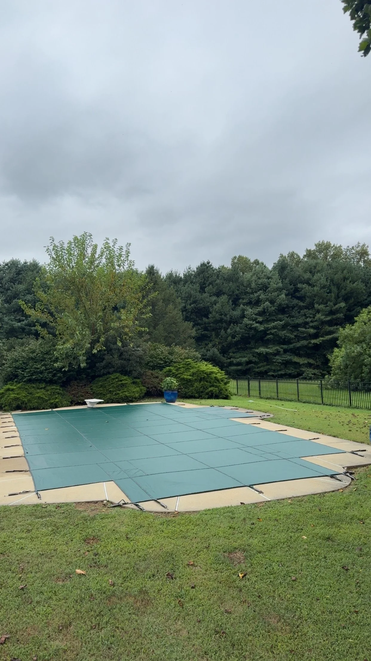 Pool closings consist of lowering water level, winterization of pool lines and equipment, cleaning of pool filters, and installment of the winter cover.